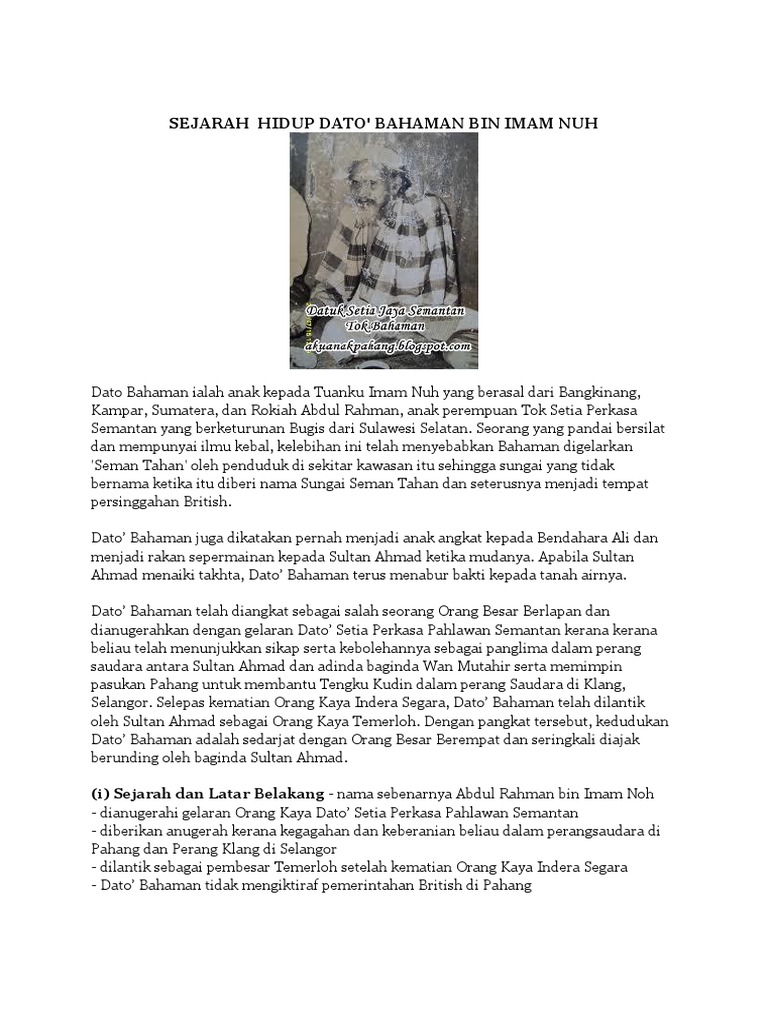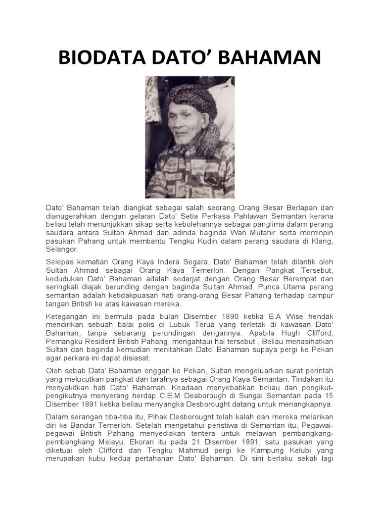 Sejarah Hidup Dato Bahaman Bin Imam Nuh Pdf
